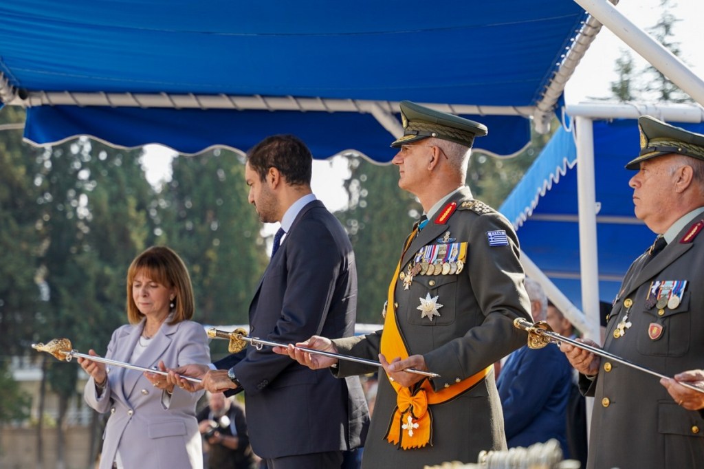 Ο Αρχηγός ΓΕΣ Αντιστράτηγος Γεώργιος Κωστίδης, ο Αρχηγός ΓΕΝ Αντιναύαρχος Δημήτριος – Ελευθέριος Κατάρας ΠΝ και ο Αρχηγός ΓΕΑ Αντιπτέραρχος (Ι) Δημοσθένης Γρηγοριάδης.