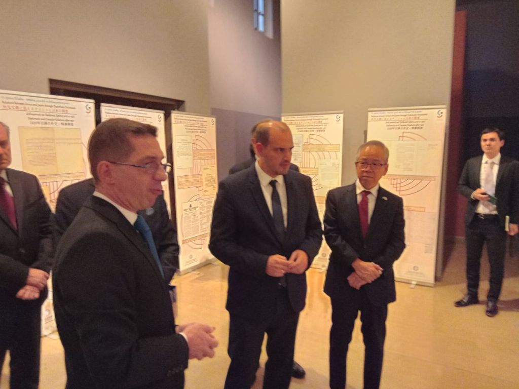 φωτ.από τα εγκαίνια της έκθεσης, από αριστερά τω βλέποντι, ο Υφυπουργός Εξωτερικών κ. Γιώργος Κώτσηρας με τον Πρέσβη της Ιαπωνίας κ. Ito Koichi