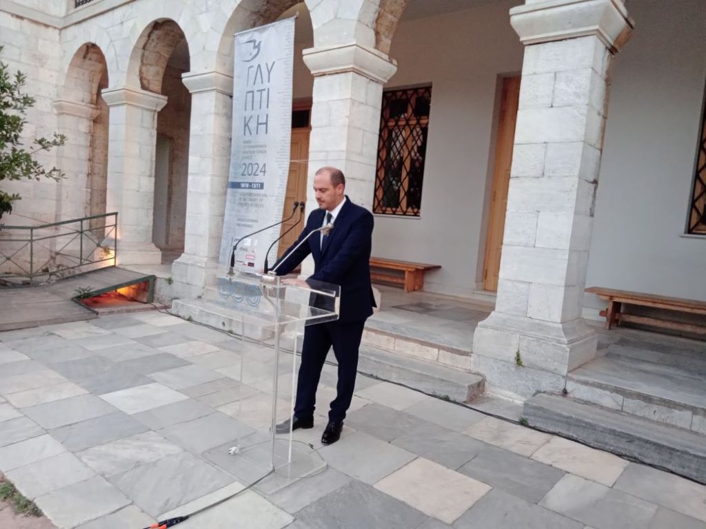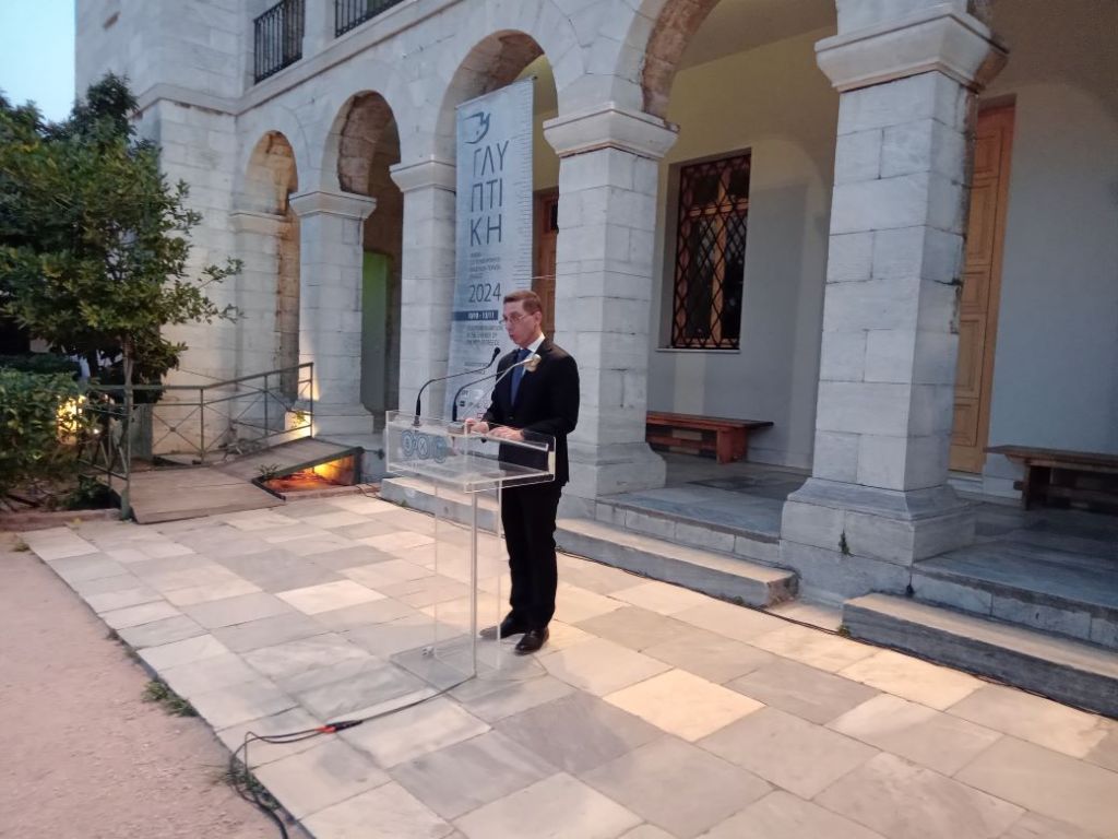 Ο Υφυπουργός Εξωτερικών κ. Γιώργος Κώτσηρας, απευθύνοντας χαιρετισμό στην εκδήλωση, από τον ωραίο χώρο του αιθρίου του μουσείου, συνεχάρη την Υπηρεσία Διπλωματικών Εγγράφων του Υπουργείου Εξωτερικών και τον κ. Γιώργο Πολυδωράκη αλλά και την κα Αικατερίνη Δελαπόρτα Διευθύντρια του Μουσείου.
