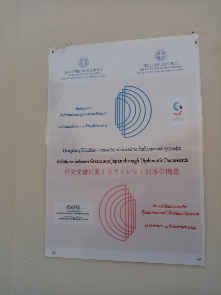 Με μεγάλη επιτυχία πραγματοποιήθηκε η παρουσίαση της έκθεσης «Οι σχέσεις Ελλάδας – Ιαπωνίας μέσα από τα διπλωματικά έγγραφα», την οποία διοργάνωσε την περασμένη εβδομάδα η Υπηρεσία Διπλωματικού και Ιστορικού Αρχείου του Υπουργείου Εξωτερικών στο Βυζαντινό και Χριστιανικό Μουσείο της Αθήνας, στο πλαίσιο του Έτους Πολιτισμού και Τουρισμού Ελλάδος-Ιαπωνίας.