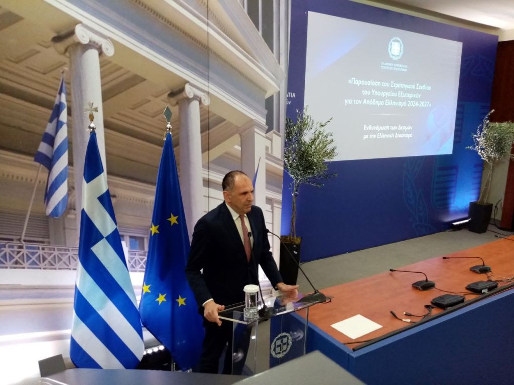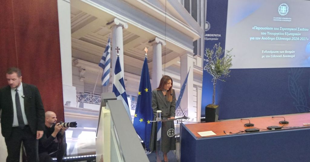 Είναι σήμερα μια μεγάλη και όμορφη μέρα για το Υπουργείο Εξωτερικών, να παρουσιάζουμε ένα πολύ οραματικό σχέδιο. Ένα σχέδιο που όλοι εδώ στο Υπουργείο Εξωτερικών το πήραμε εξαιρετικά ζεστά. Και είμαστε ιδιαίτερα χαρούμενοι σήμερα να παρουσιάζουμε ενώπιον του κυρίου Πρωθυπουργού το Στρατηγικό Σχέδιο για τον Απόδημο Ελληνισμό 2024-2027.