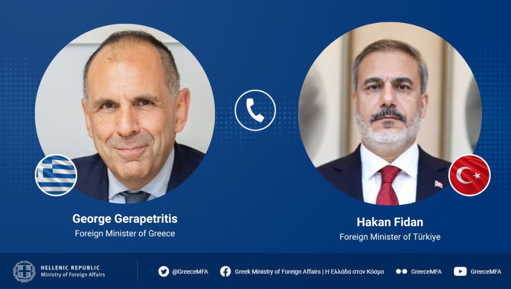 Ο Υπουργός Εξωτερικών Γιώργος Γεραπετρίτης είχε σήμερα τηλεφωνική συνομιλία με τον Τούρκο ομόλογό του, Χακάν Φιντάν, όπως ανακοίνωσε το Υπουργείο Εξωτερικών στο Χ.