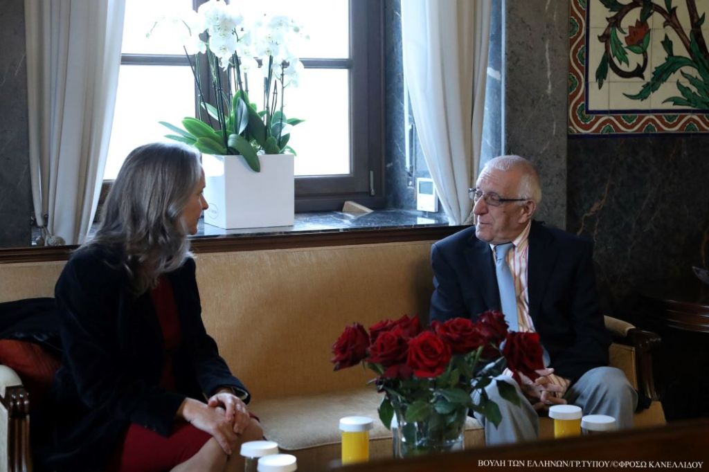 Ο Πρόεδρος της Βουλής των Ελλήνων, κ. Νικήτας Κακλαμάνης, συναντήθηκε σήμερα με την Επιτετραμμένη της Πρεσβείας των Η.Π.Α. στην Ελλάδα, κ. Maria Olson.