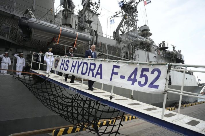 Στη συνέχεια, ο Υπουργός επισκέφτηκε σε λιμένα της περιοχής τη Φρεγάτα «ΥΔΡΑ» του Πολεμικού Ναυτικού, η οποία συμμετέχει στην Ευρωπαϊκή Επιχείρηση ΑΣΠΙΔΕΣ (EUNAVFOR ASPIDES).