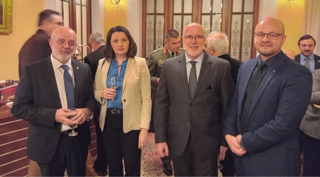 φωτ. από αριστερά, ο Πρόεδρος του ΣΕΚΠΥ κ. Τάσος Ροζολής, δίπλα του η Πρέσβης της Σλοβακίας κα Marcela Hanusova, αμέσως μετά ο Πρέσβης της Ουγγαρίας κ. Zsolt Sandor, στα αριστερά του ο Ακόλουθος Άμυνας της Τσεχίας κ. Jan Olejnik ενώ στο φόντο διακρίνεται ο κ. Ιωάννης Ροζολής