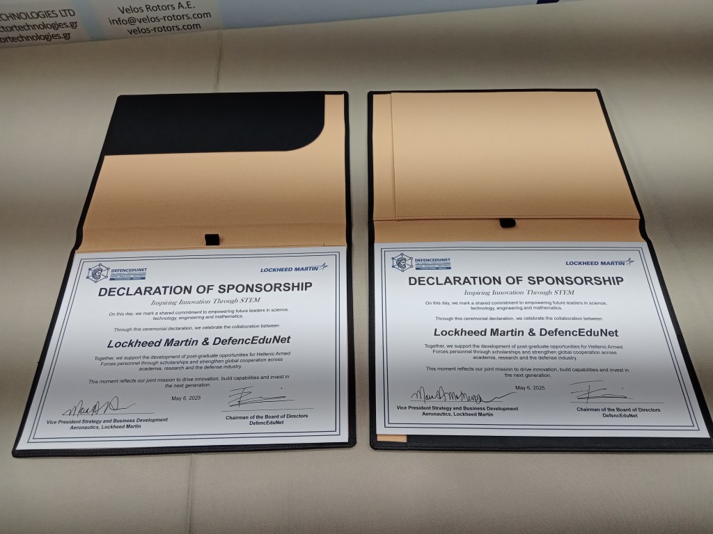 Εκεί, φτάσαμε στο σωστό timing καθώς ήταν η ώρα μέσα σε μια γιορτινή ατμόσφαιρα όπου θα έπεφταν… οι υπογραφές στην συνεργασία μεταξύ του αμερικανικού κολοσσού της Lockheed Martin και του DefencEduNet.