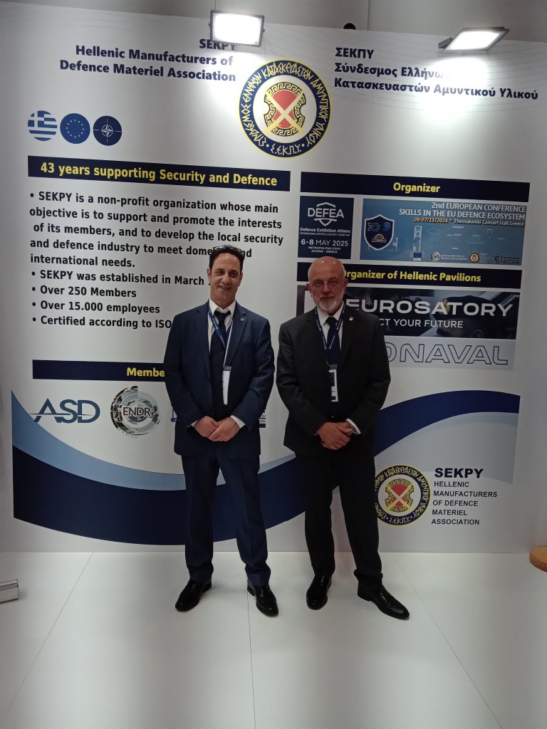 Ο ΣΕΚΠΥ, όπως σημείωσε, εκπροσωπεί σήμερα πάνω από 250 ελληνικές εταιρείες του κλάδου με περισσότερους από 16.000 εργαζομένους και συνολική παραγωγή που ξεπερνά τα 2 δισ. ευρώ ετησίως. Ο Σύνδεσμος, ενεργό μέλος των ENDR και ASD, διαδραματίζει κομβικό ρόλο στη διαμόρφωση ενός ισχυρού και τεχνολογικά αυτάρκους ευρωπαϊκού αμυντικού χώρου.