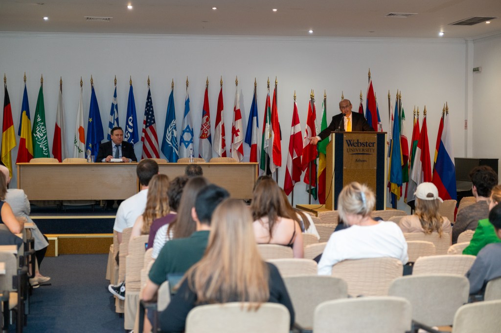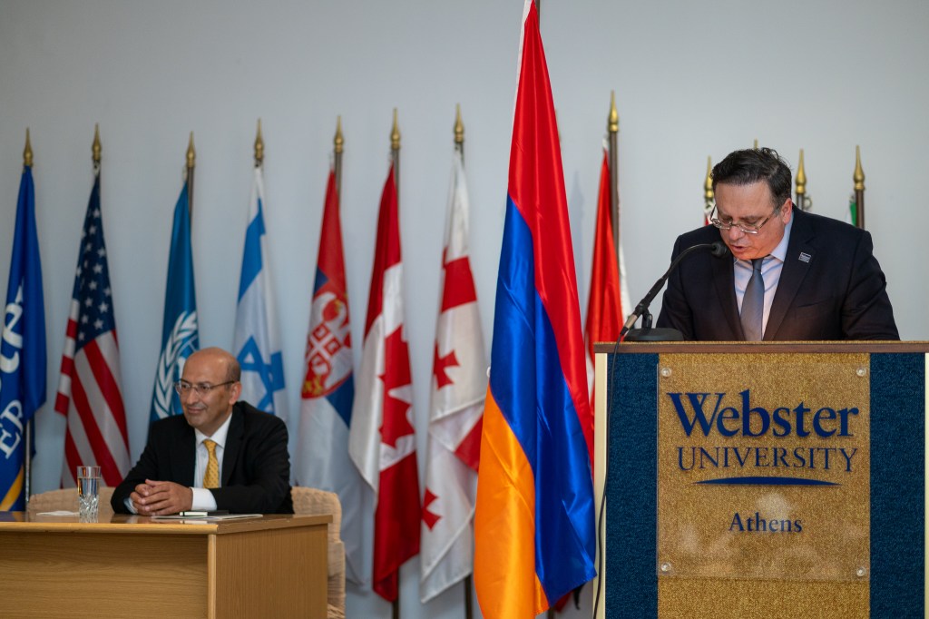 Κατόπιν πρόσκλησης του Αμερικανικού Πανεπιστημίου Webster στην Αθήνα, στο πλαίσιο της πανεπιστημιακής σειράς διαλέξεων “Ambassador Forum Lecture Series» και μετά από πρόσκληση του Πρύτανη του Πανεπιστημίου Καθηγητή Βασίλη Μποτόπουλου, ο Έκτακτος και Πληρεξούσιος Πρέσβης της Δημοκρατίας της Αρμενίας στην Ελλάδα, Τιγκράν Μκρτσιάν, πραγματοποίησε διάλεξη με θέμα «Η εξωτερική πολιτική της Αρμενίας σε ταραχώδεις καιρούς».