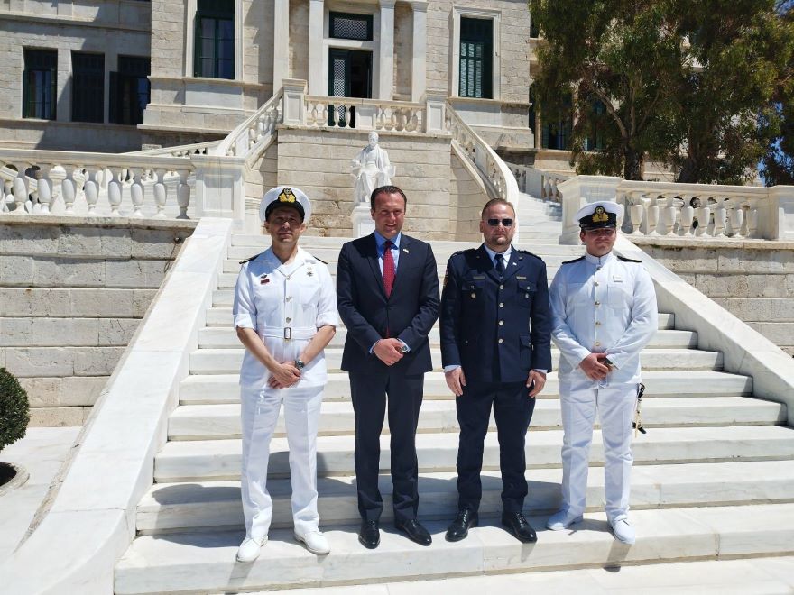 Ο Πρέσβης εξέφρασε τις ευχαριστίες του στον Διοικητή και την ομάδα του για τη συνεργασία τους και συζήτησε τις προϋποθέσεις και τις απαιτήσεις για τους Γεωργιανούς φοιτητές για μελλοντική συμμετοχή στην Ελληνική Ναυτική Ακαδημία.