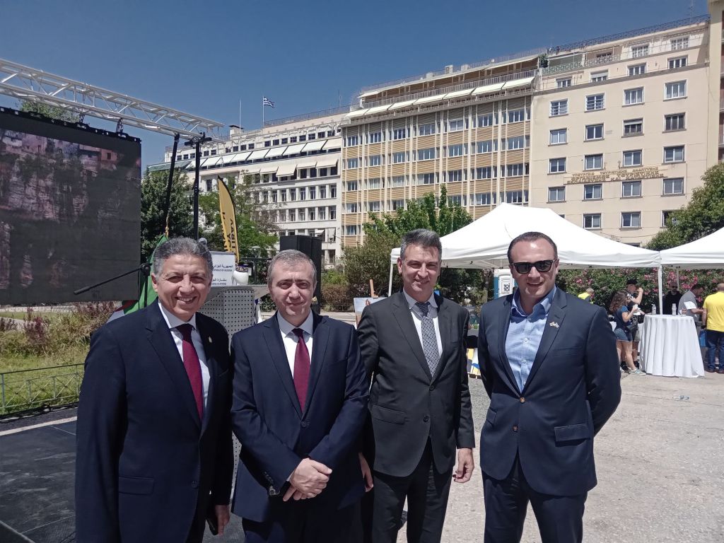 φωτ.από αριστερά τω βλέποντι ο Πρέσβης της Αιγύπτου κ. Omar Amer Youssef, αμέσως μετά ο Πρέσβης του Αζερμπαϊτζάν κ. Arif Mammadov, δίπλα του ο Γενικός Γραμματέας Διεθνών Οικονομικών Σχέσεων και Εξωστρέφειας κ. Δημήτρης Σκάλκος και πρώτος από δεξιά τω βλέποντι ο Πρέσβης της Γεωργίας κ. Levan Beridze