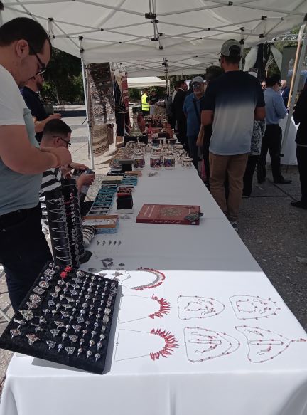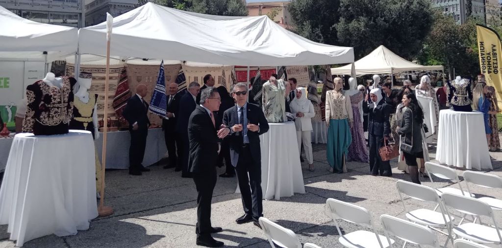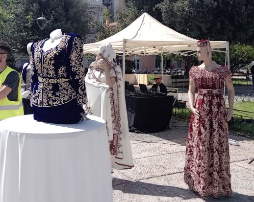 Η έναρξη της εκδήλωσης ήταν απόλυτα επιτυχημένη, αν και ο ήλιος κυριολεκτικά «έψηνε» το προχθεσινό μεσημεράκι. Ήταν όλα τόσο καλά οργανωμένα από το προσωπικό της Πρεσβείας της φίλης χώρας Αλγερίας και τους συνεργάτες τους που όλοι έμειναν ευχαριστημένοι και έδωσαν τα συγχαρητήριά τους. Η αρχή έγινε με το θερμό καλωσόρισμα της Αλγερινής Πρέσβεως κας Zaina Benhabouche η οποία ήταν ντυμένη με μια ωραία παραδοσιακή φορεσιά της χώρας της φέρουσα καλλιτεχνικά κοσμήματα.
