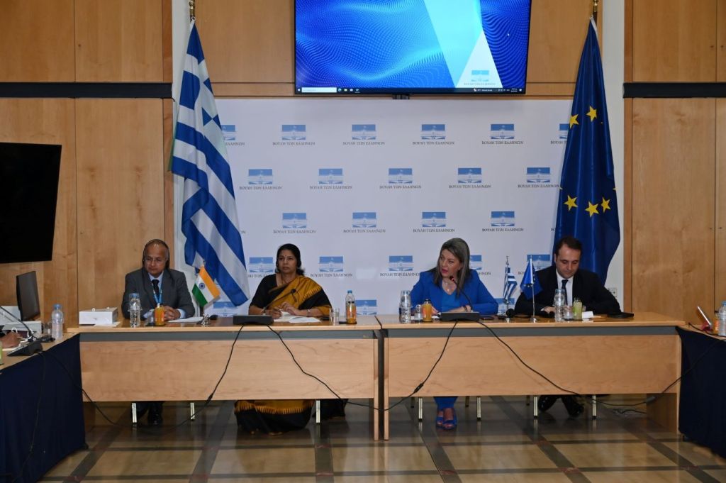 Η Πρόεδρος της Κοινοβουλευτικής Ομάδας Φιλίας Ελλάδας-Ινδίας, κ. Μαρία Αντωνίου, αναφέρθηκε στις διμερείς διπλωματικές σχέσεις, «που χρονολογούνται από το 1950 και έχουν αναπτυχθεί πολυεπίπεδα, καθώς οι δύο λαοί -που είναι συνέχεια δύο πανάρχαιων πολιτισμών- συνδέονται με άρρηκτη φιλία, η οποία αποτυπώνεται στις συχνές ανταλλαγές επισκέψεων υψηλού επιπέδου, τη διεξαγωγή ετήσιων πολιτικών διαβουλεύσεων και τη συνεργασία στο πλαίσιο των διεθνών οργανισμών». Μεταξύ άλλων, η κ. Αντωνίου σημείωσε ότι «η Ελλάδα μπορεί να διαδραματίσει κομβικό ρόλο ως πολυεπίπεδη πύλη (στρατηγική, γεωπολιτική και εμπορική) της Ινδίας προς την Ευρώπη, με έμφαση στα μεγάλα γεωπολιτικά έργα που προωθούν τη συνδεσιμότητα μεταξύ Ινδο-Ειρηνικού και Ευρώπης και οδηγούν, με διάφορους τρόπους, στην Ελλάδα».