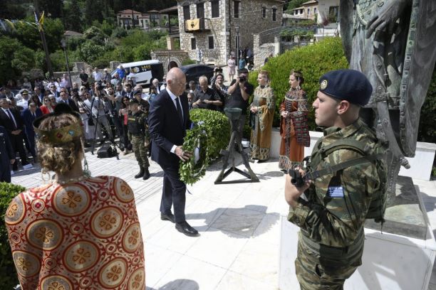 Στη συνέχεια, ο κ. Δένδιας μετέβη στον ανδριάντα του Κωνσταντίνου Παλαιολόγου, στην πλατεία της κοινότητας Μυστρά, όπου τελέστηκε τρισάγιο. Ακολούθησε κατάθεση στεφάνων.