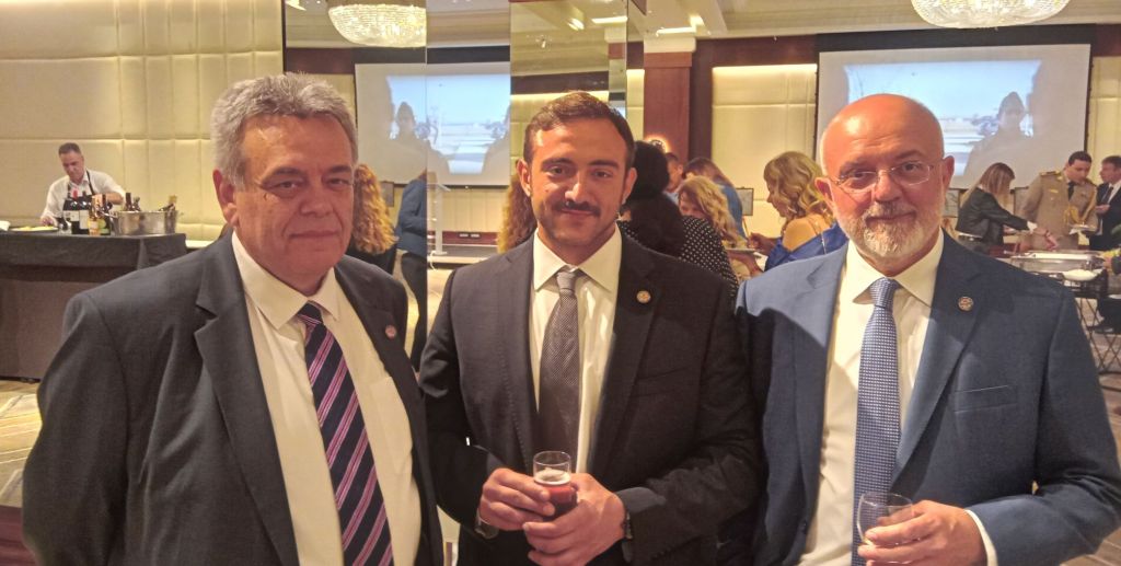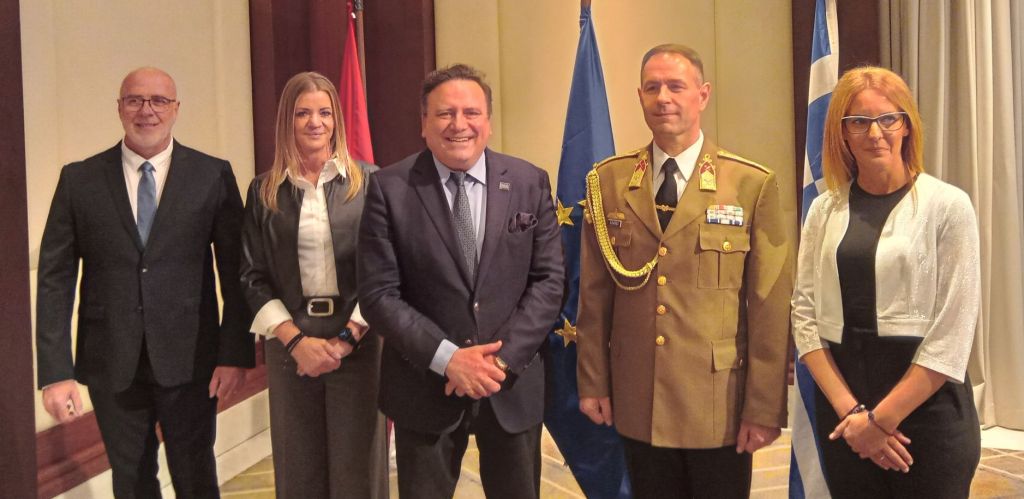 φωτ.από αριστερά, ο κ. Αθανάσιος Δρούγος, στο κέντρο ο Ακόλουθος Άμυνας της Αιγύπτου κ. Magdy Radwan και από δεξιά ο Ακόλουθος Άμυνας της Αλβανίας κ. Artan Bufi