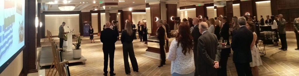 Για την υποδοχή μας όταν φτάσαμε στην μεγάλη, φωτεινή, γεμάτη καθρέφτες, πολυτελή αίθουσα εκδηλώσεων του ξενοδοχείου Athens Marriott μας περίμεναν ο Πρέσβης της Ουγγαρίας στην Ελλάδα κ. Zsolt Sándor και ο ΑΚΑΜ κ. Márton Szekeres μαζί με τις ωραιότατες συζύγους τους.