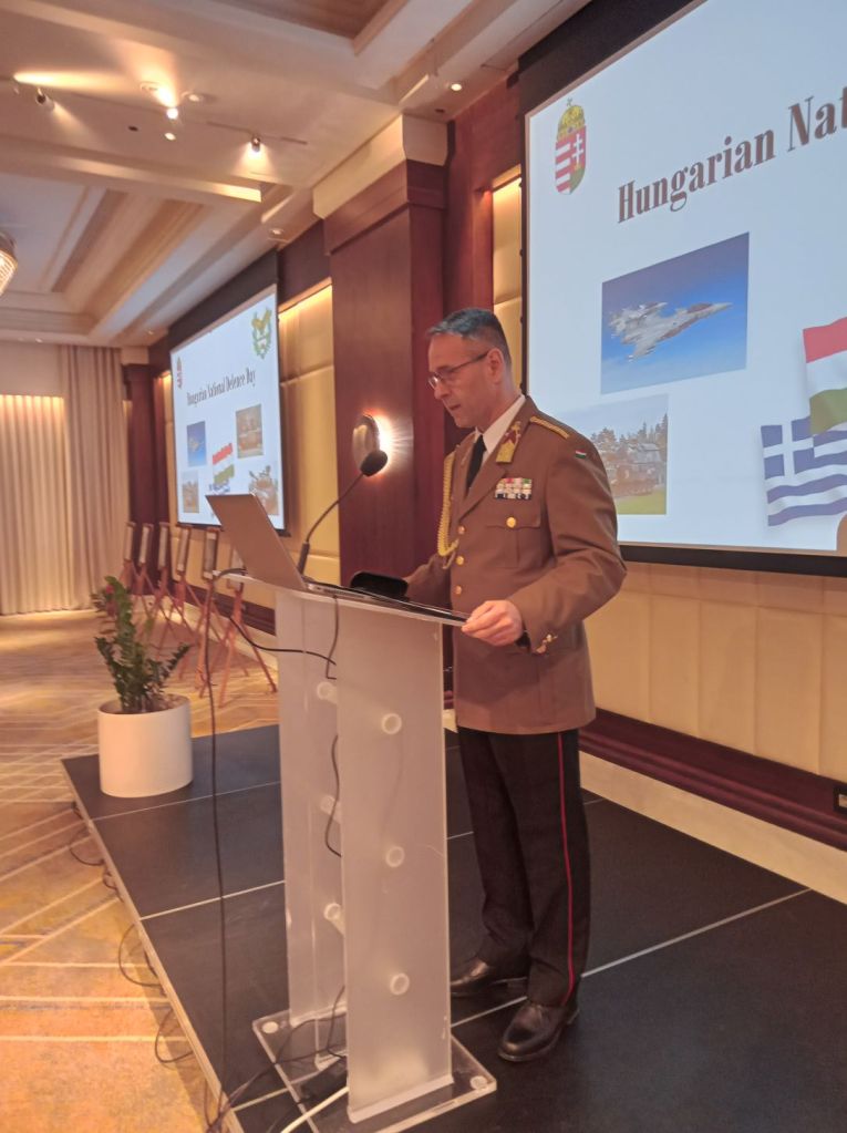 Λίγο αργότερα, ο Ακόλουθος Άμυνας της Ουγγαρίας Συνταγματάρχης κ. Marton Szekeres πήρε εκ νέου τον λόγο, κάνοντας μια ιστορική αναδρομή στο παρελθόν των Ενόπλων Δυνάμεων της Πατρίδας του, παραθέτοντας ενδιαφέροντα πληροφοριακά στοιχεία, αναλύοντας πτυχές της δομής των ΕΔ της χώρας του και παρουσιάζοντας τις εξελίξεις στην αμυντική βιομηχανία που σηματοδότησαν πολλές αλλαγές αλλά και τις προοπτικές που ανοίγονται για περαιτέρω μελλοντική αναβάθμιση.