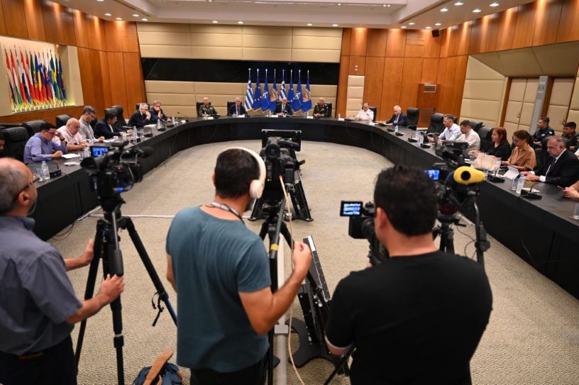 «Ευχαριστώ θερμά για την παρουσία σας εν μέσω καύσωνος και μάλιστα φαντάζομαι και τη δυσκολία σας να έρθετε στην αίθουσα λόγω των έργων που κάνουμε στο Υπουργείο για τη νέα όψη. Θα ήθελα, πριν σας ενημερώσω για τις αλλαγές, να κάνω μια μικρή αναδρομή στο τι έχει γίνει μέχρι τώρα στο πλαίσιο της «Ατζέντας 2030», η οποία, όπως έχουμε πει, έχει τη φιλοδοξία να θωρακίσει τη χώρα από οιαδήποτε ορατή απειλή, να αλλάξει ριζικά τις Ένοπλες Δυνάμεις.