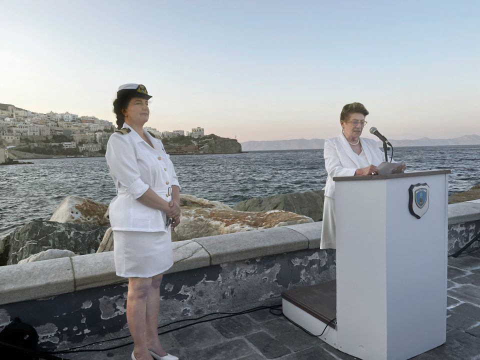 η Λιμενάρχης Σύρου Αντιπλοίαρχος ΛΣ Μαριάννα Δαλεζίου, η Αερολιμενάρχης Σύρου κα Βίκυ Πρέκα, ο Πρόεδρος του Επιμελητηρίου Κυκλάδων κ. Γιάννης Ρούσσος,