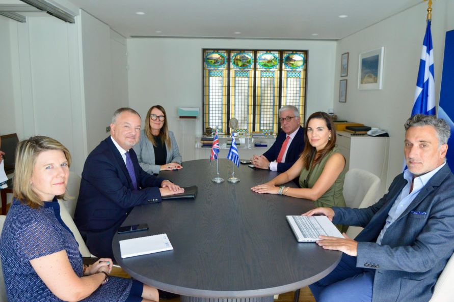 Ο Πρέσβης της Μεγάλης Βρετανίας στη Ελλάδα κ. Matthew Lodge, η Πρόξενος κα. Alexandra Gregory και στελέχη της Πρεσβείας και του Προξενείου επισκέφθηκαν την Υπουργό Τουρισμού, κα Κεφαλογιάννη, με σκοπό την αποτίμηση της πορείας των τουριστικών σχέσεων των δύο χωρών.