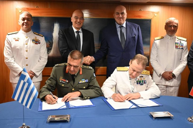 Παρουσία των δύο Υπουργών, υπογράφηκε από τον Γενικό Διευθυντή Αμυντικών Εξοπλισμών και Επενδύσεων (ΓΔΑΕΕ) Υποστράτηγο Ιωάννη Μπούρα και τον Ιταλό ομόλογό του Διευθυντή Εθνικών Εξοπλισμών της Ιταλίας Αντιναύαρχο Ottaviani Giancinto, Μνημόνιο Συνεργασίας για τη Ναυτική Συνεργασία Ελλάδας – Ιταλίας και Δήλωση Προθέσεων για την απόκτηση 2+2 ιταλικών φρεγατών τύπου FREMM, κλάσης Bergamini.