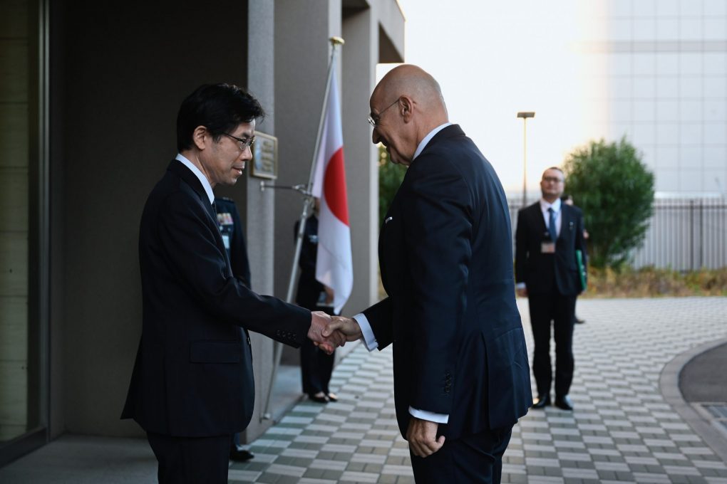 Αμέσως μετά ο κ. Δένδιας συναντήθηκε με τον Ιάπωνα ομόλογό του Σιντζίρο Κοϊζούμι (ShinjiroKoizumi) στο Υπουργείο Άμυνας, στο Τόκυο, όπου πραγματοποιήθηκε επίσημη υποδοχή. Κατά τη συνάντηση εξετάσθηκαν συγκεκριμένοι τρόποι ενίσχυσης της ελληνο-ιαπωνικής αμυντικής συνεργασίας, ιδίως στην καινοτομία και τις προηγμένες τεχνολογίες, με έμφαση στην εφαρμογή τους στο θαλάσσιο περιβάλλον. Κατά τη συνάντηση, όπως αναφέρει σχετικώς το ΥΠΕΘΑ, ο Έλληνας Υπουργός απηύθυνε επίσημη πρόσκληση στον Ιάπωνα ομόλογο του να επισκεφτεί την Ελλάδα, την οποία αποδέχθηκε.