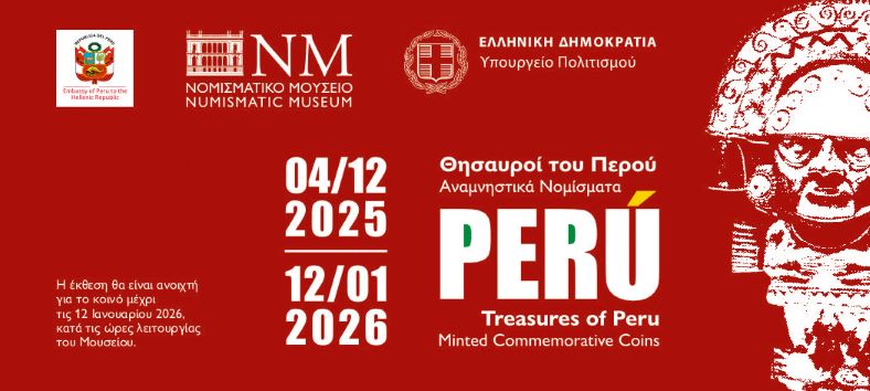 Η Πρεσβεία του Περού στην Ελληνική Δημοκρατία και το Νομισματικό Μουσείο επιμελήθηκαν από κοινού την έκθεση με τίτλο “Θησαυροί του Περού: Αναμνηστικά Νομίσματα” η οποία πραγματοποιείται στο κέντρο της Αθήνας, στο Ιλίου Μέλαθρον και συγκεκριμένα στην αίθουσα “Μάντω Οικονομίδου”.
