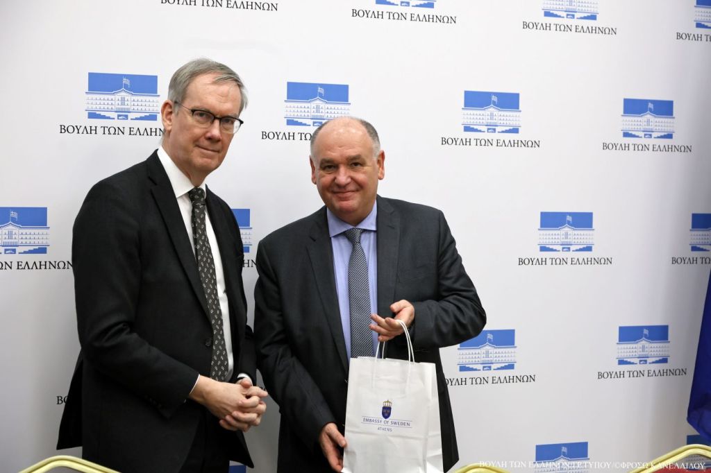 Συνάντηση με τον Πρέσβη του Βασιλείου της Σουηδίας στην Ελλάδα κ. Håkan Emsgård είχε σήμερα στη Βουλή ο Πρόεδρος της Κοινοβουλευτικής Ομάδας Φιλίας Ελλάδας–Σουηδίας κ. Σταύρος Παπασωτηρίου.