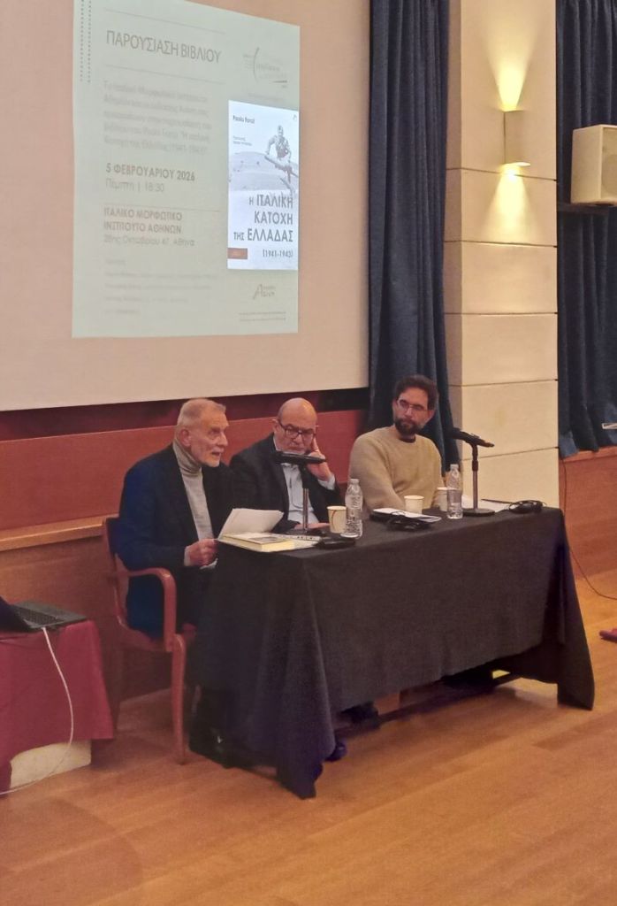 Με επιτυχία πραγματοποιήθηκε η παρουσίαση του βιβλίου του Paolo Fonzi με τίτλο: “Η ιταλική κατοχή της Ελλάδας (1941–43)” που κυκλοφορεί από τις εκδόσεις Ασίνη. Η βιβλιοπαρουσίαση έλαβε χώρα την Πέμπτη 5 Φεβρουαρίου 2026 στην κεντρική αίθουσα εκδηλώσεων του Ιταλικού Μορφωτικού Ινστιτούτου Αθηνών.