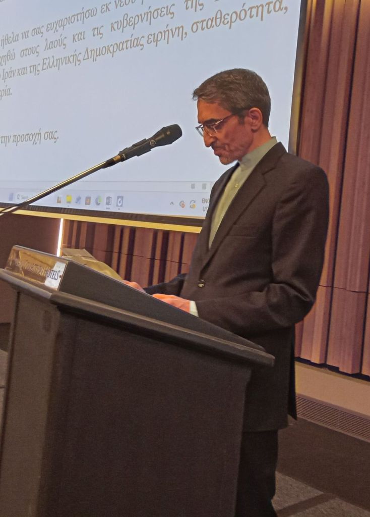 φωτ. ο Πρέσβης του Ιράν κ. Malek Hossein Givzad κατά τη διάρκεια της ομιλίας του