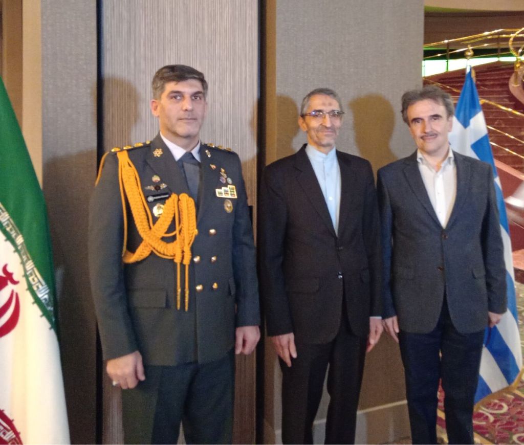 φωτ.στο κέντρο, ο Πρέσβης του Ιράν κ. Malek Hossein Givzad, από αριστερά, ο Ακόλουθος Άμυνας του Ιράν κ. Mojtaba Ghasemi και από δεξιά, ο Καθηγητής – Διεθνολόγος κ. Ευάγγελος Βενέτης