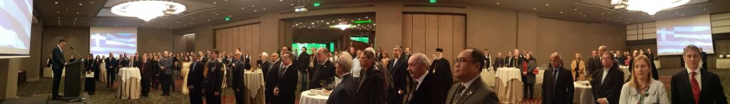 Χαιρετηθήκαμε με αγαπητούς Πρέσβεις, των οποίων η εξαιρετική παρουσία εδώ αποτελεί τιμή για την χώρα τους που τους έχει αναθέσει καθήκοντα να την εκπροσωπούν στην Ελλάδα αλλά και τιμή για την Ελλάδα που βρίσκονται τόσο αξιόλογοι άνθρωποι εδώ. Επίσης, καλησπερίσαμε Ακολούθους Άμυνας ξένων χωρών, πρότυπα ανδρών και στρατιωτικών που επίσης η παρουσία τους στην Αθήνα είναι τιμητική καθώς εκπροσωπούν άριστα τις ένοπλες δυνάμεις της χώρας τους.