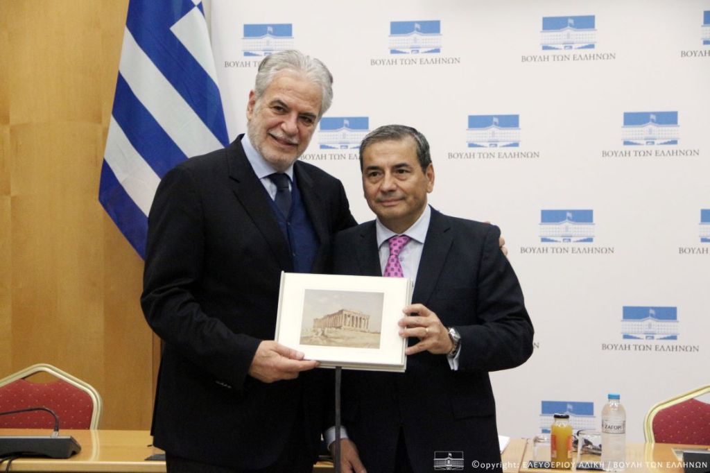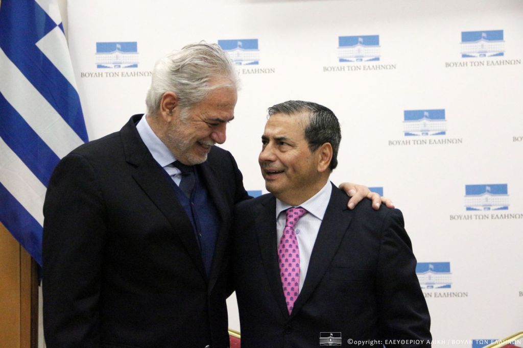 Συνάντηση του Προέδρου της Κοινοβουλευτικής Ομάδας Φιλίας Ελλάδας – Χιλής, κ. Χρήστου Στυλιανίδη, με τον Πρέσβη της Δημοκρατίας της Χιλής στην Ελλάδα, κ. Juan Manuel Pino Vasquez, πραγματοποιήθηκε σήμερα στη Βουλή.