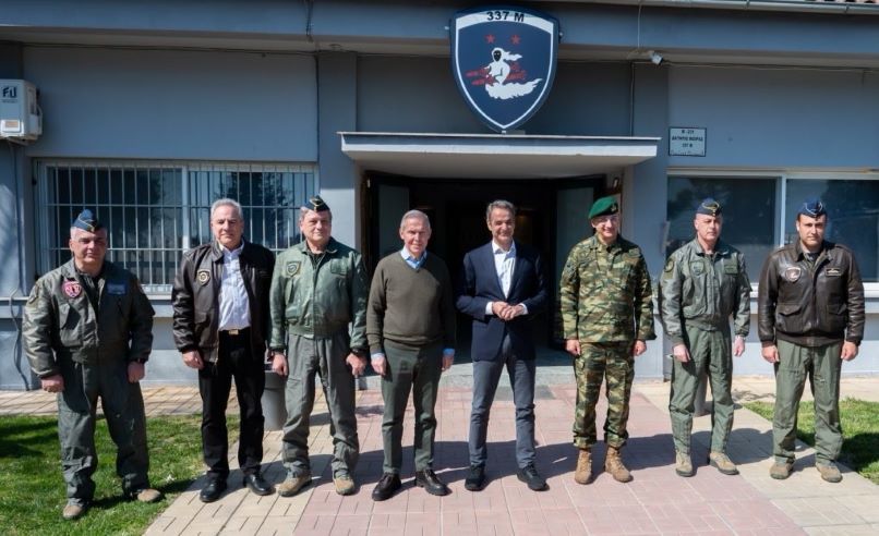 Τον Πρωθυπουργό Κυριάκο Μητσοτάκη συνόδευσε ο Υφυπουργός Εθνικής Άμυνας Θανάσης Δαβάκης στην επίσκεψή του, σήμερα Σάββατο 14 Μαρτίου 2026, στην 337 Μοίρα της 110 Πτέρυγας Μάχης (ΠΜ) και στο Εθνικό Κέντρο Αεροπορικών Επιχειρήσεων στην Αεροπορική Βάση Λάρισας. Εκεί τους υποδέχθηκαν ο Αρχηγός ΓΕΕΘΑ Στρατηγός Δημήτριος Χούπης, ο Αρχηγός ΓΕΑ Αντιπτέραρχος (Ι) Δημοσθένης Γρηγοριάδης και ο Αρχηγός Τακτικής Αεροπορίας Αντιπτέραρχος (Ι) Παναγιώτης Γεωργακόπουλος.