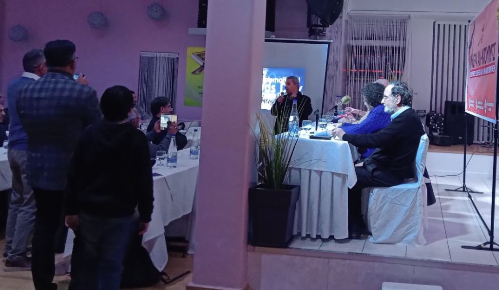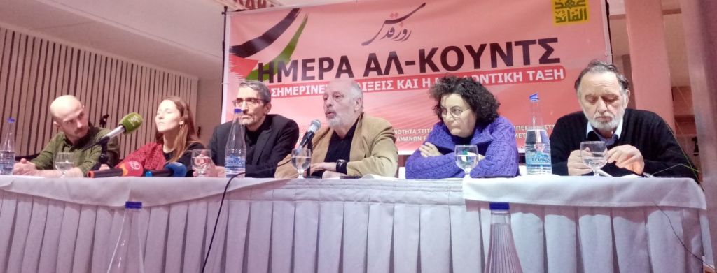 φωτ.στο βάθος, ο Πρόεδρος της Παλαιστινιακής παροικίας στην Αθήνα καθηγητής κ. Latif Darwish κατά τον χαιρετισμό του στην εκδήλωση