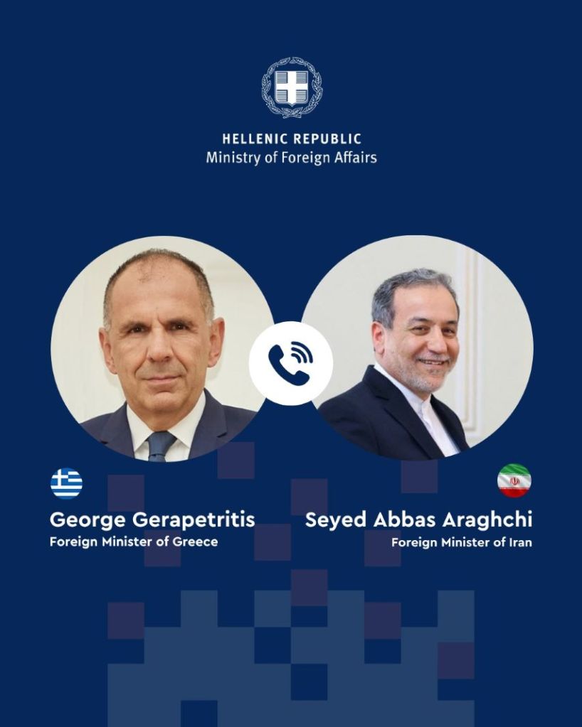 Ο Υπουργός Εξωτερικών Γιώργος Γεραπετρίτης είχε τηλεφωνική επικοινωνία με τον Υπουργό Εξωτερικών του Ιράν Abbas Araghchi.